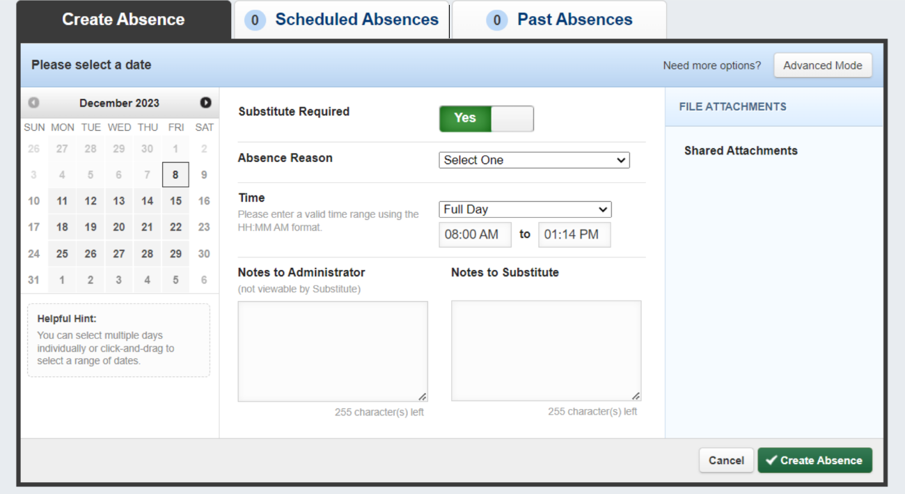 To ensure proper handling of absences, please remember that the initial step is to enter the absence into Frontline. This practice enables us to effectively manage and address staffing needs, allowing us to utilize our Springs Substitute and Temp employees and achieve cost savings for Springs.