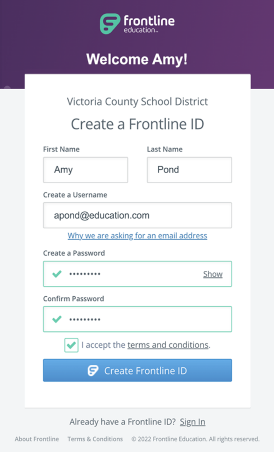 Once your account has been created, you can sign in to all Frontline applications using this Frontline ID.
