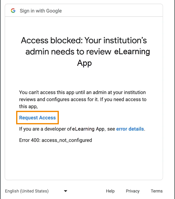 This image pops up if your student is being blocked by Google and Springs policy. This is not due to GoGuardian. Due to privacy laws, all Google applications and any website that allows for sign-in via Google must be manually reviewed by IT at the request of a director, principal, vice principal, or TOSA. If you encounter a student receiving this block, please email your supervisor to request a review by IT, including the student name, grade, and purpose of the app or website in question. Your supervisor will let you know the outcome of this review.
