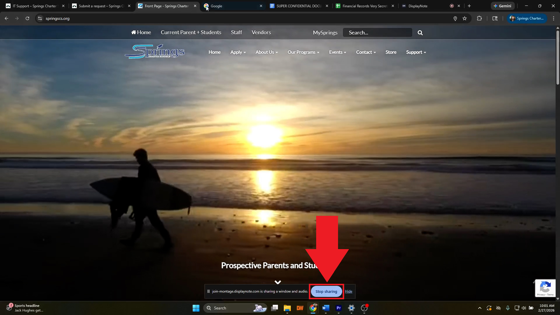 - Once you click "Share", the Newline board will display the chosen window, including the list of the tabs at the top, so tabs with sensitive titles should be removed from the window if you don't want it to be visible. It will share this until you close the "Newline Cast" app on the Newline board, if you close the window you are sharing, or if you click "Stop sharing" on your Chromebook screen.