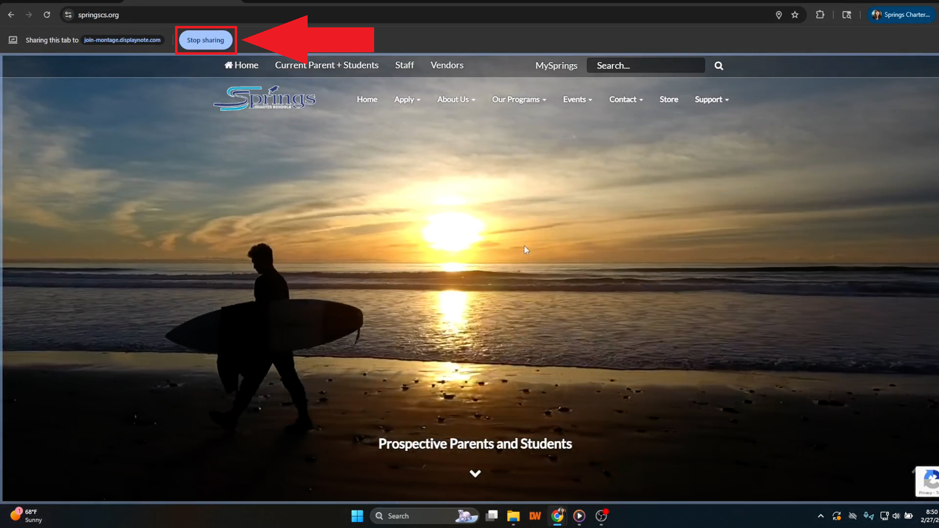 - The image below is what the view on your Chromebook will look like when you start sharing your screen. Once you click "Share", the Newline board will display the chosen tab, and nothing else. It will share this until you close the "Newline Cast" app on the Newline board, if you close the tab you are sharing on Google Chrome, or if you click "Stop sharing" on your Chromebook screen.