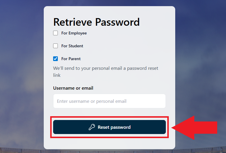 Enter your email or parent ID. Students use a username to log in, but parent accounts use an email or parent ID to log in. The login email will be the parent email listed in your OASIS account.