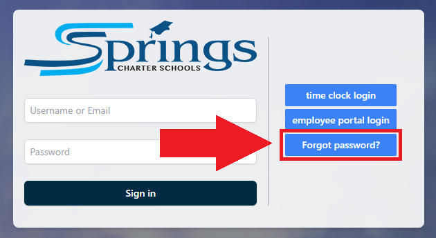 - Navigate to my.springscs.org, where you will see a box in the middle of the screen asking for your username/email and password.