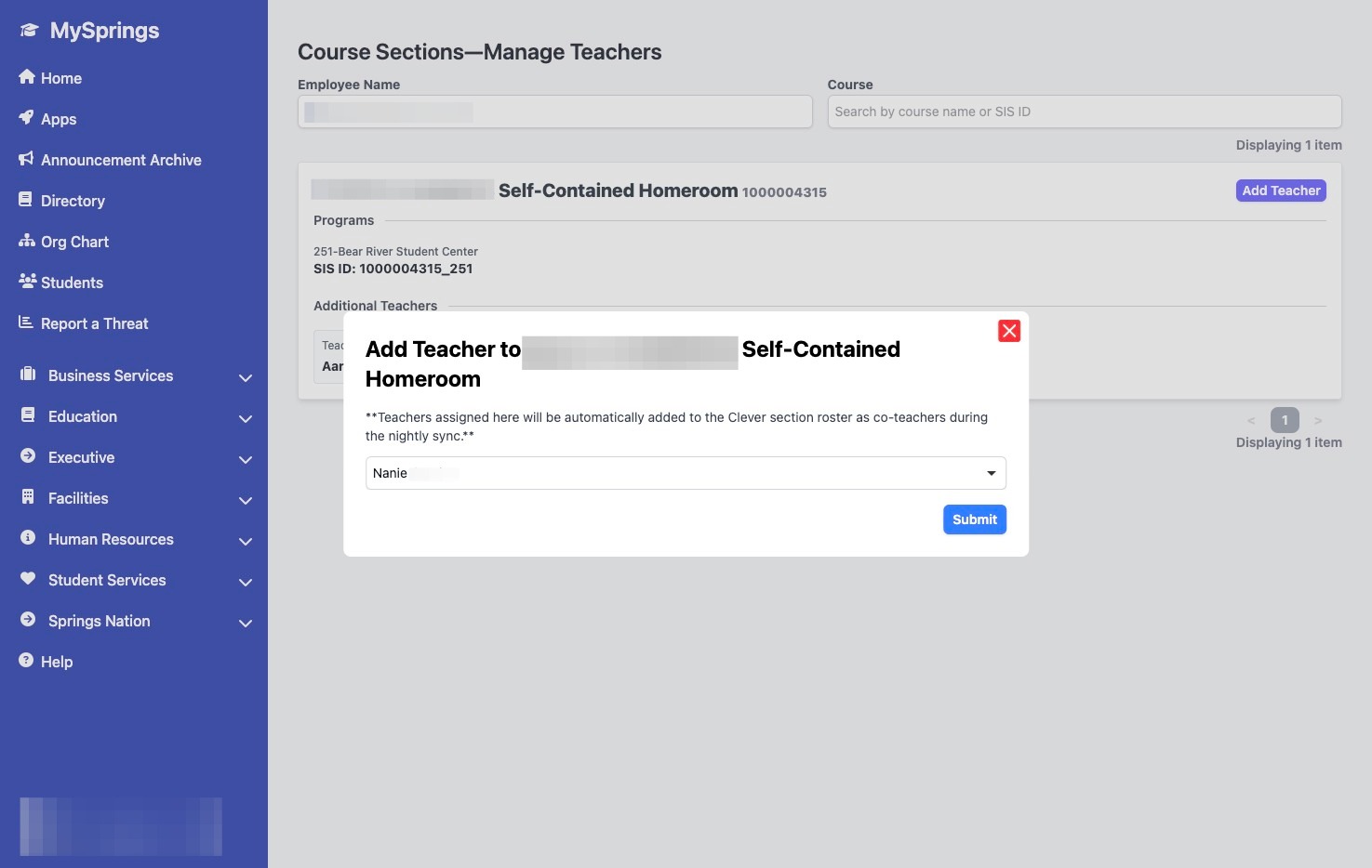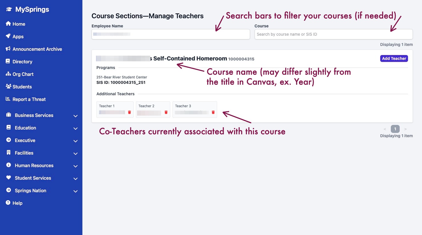 MySprings has a new Manage Course Teachers tool that lets teachers add co-teachers to their Clever app and Canvas rosters!