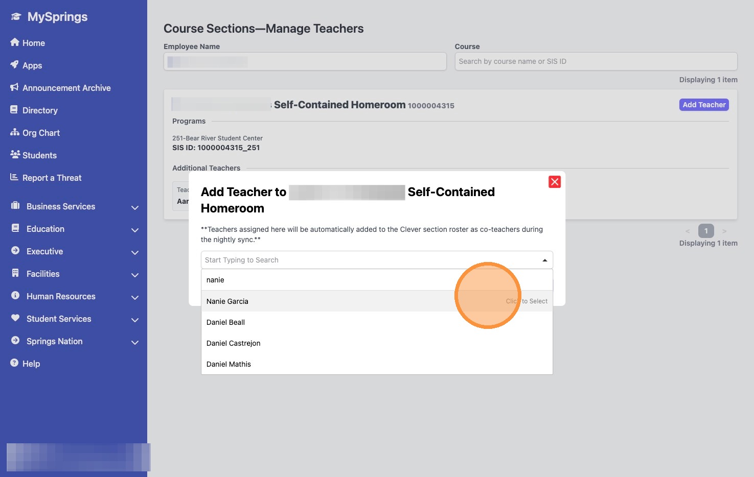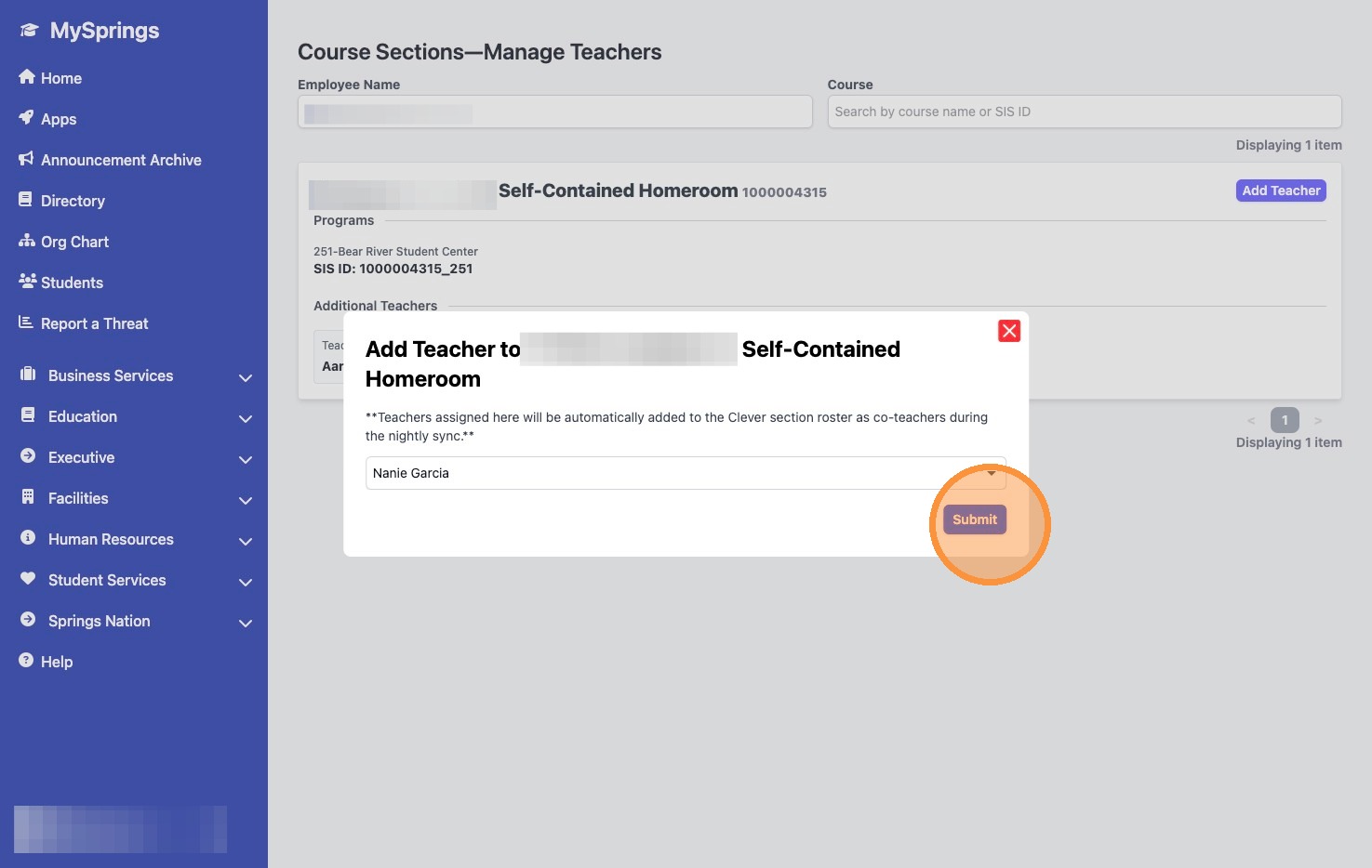 1. Allows a Springs teacher to add/remove a co-teacher in Clever and Canvas in one shot, allowing that co-teacher to view grades and progress for that teacher’s students across Clever apps and Canvas courses.