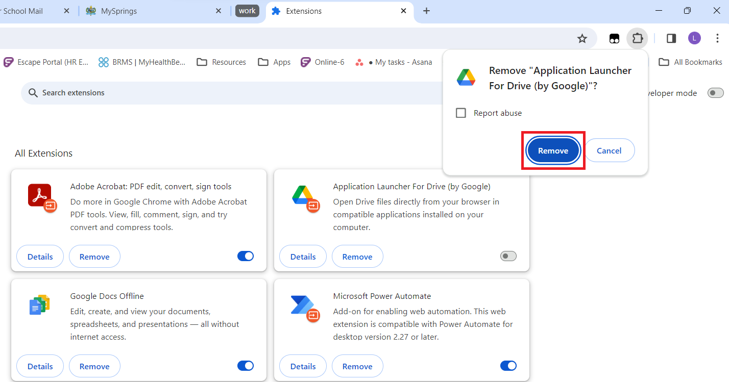 Haz clic en el botón "Quitar" de la extensión que deseas eliminar.