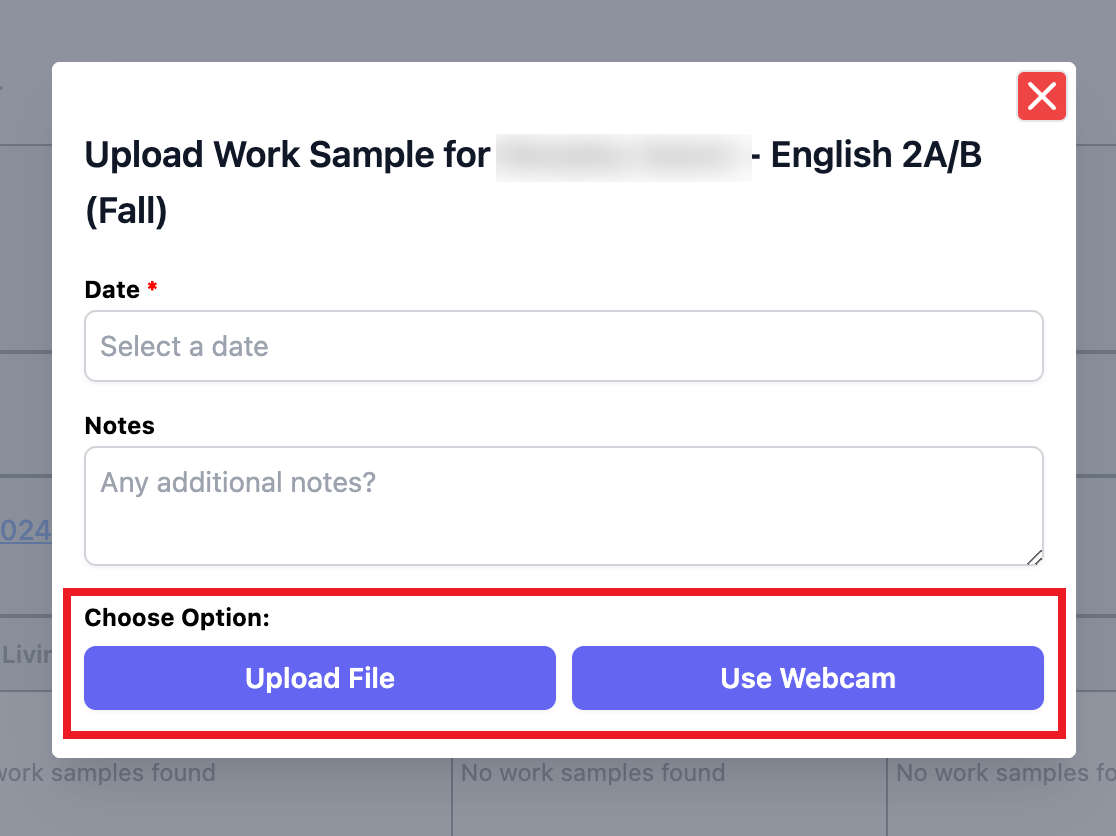 - Haga clic en una opción: "Subir archivo" o "Usar cámara web".