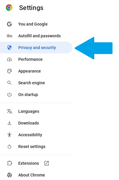 - En el lado izquierdo de la página de Configuración, haga clic en "Privacidad y seguridad".