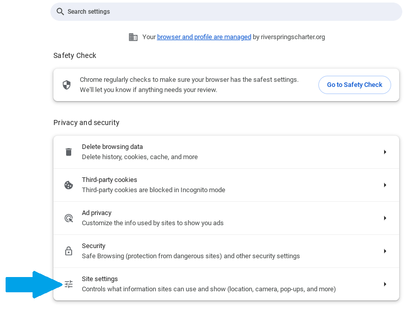 - Luego haga clic en "Configuración del sitio".
