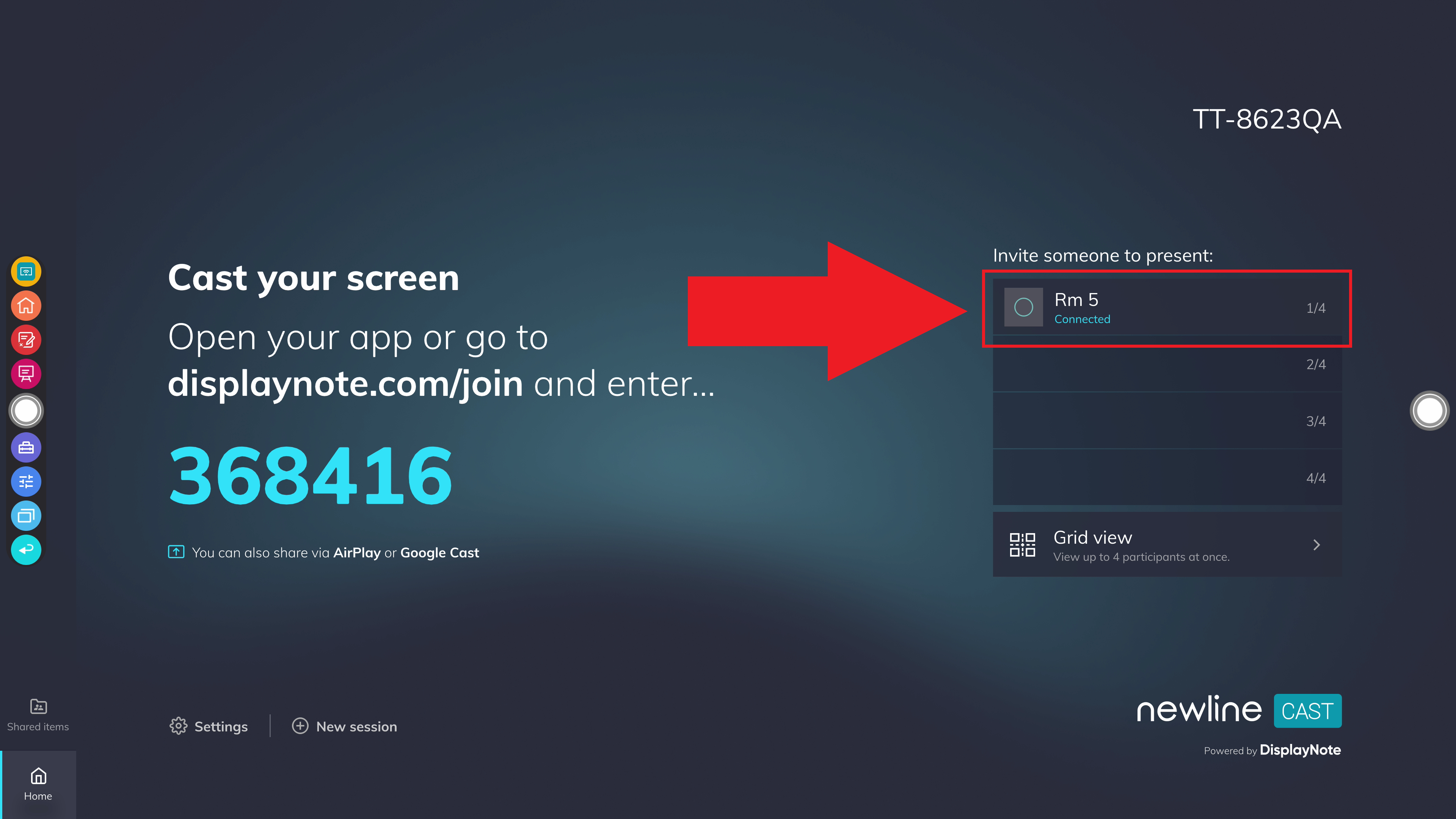 - Abra la aplicación "Newline Cast" en su tablero Newline.