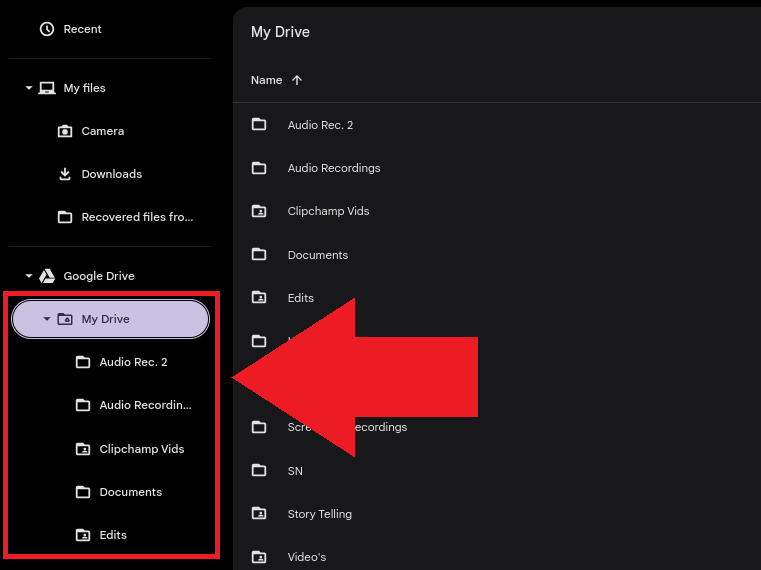 Arrastra el archivo a "Mi Unidad" en el lado izquierdo.